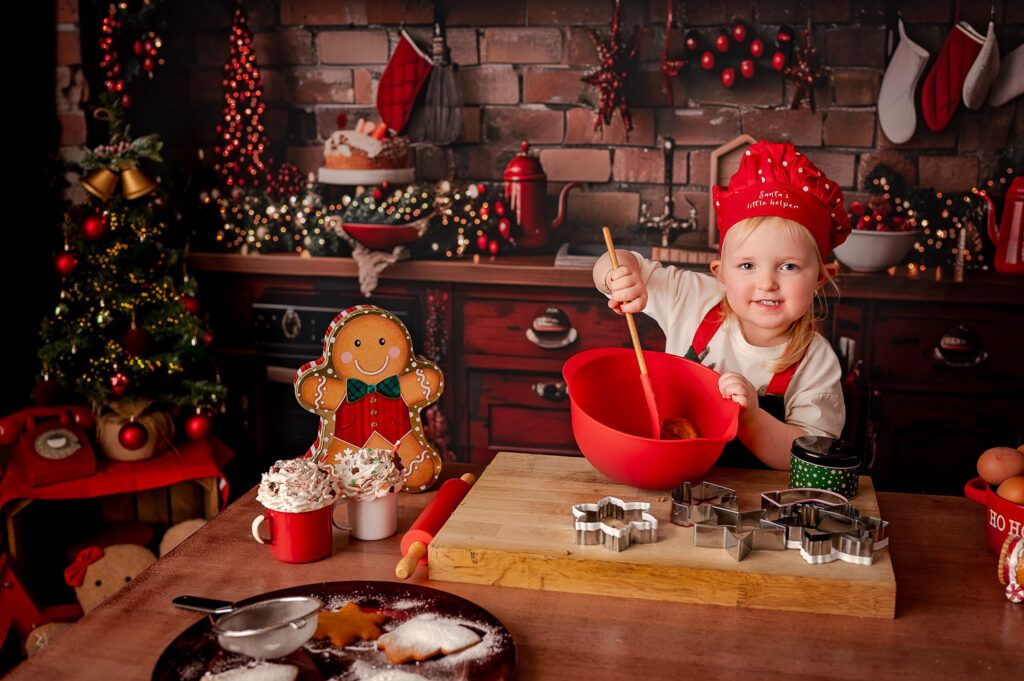 Unlike traditional setups, the Christmas Kitchen photoshoot is designed to look like a festive baking scene. Imagine your child in a cosy kitchen atmosphere, surrounded by holiday magic, sweet treats, and the comforting spirit of Christmas. It’s not just a photoshoot – it’s an experience that children absolutely love.