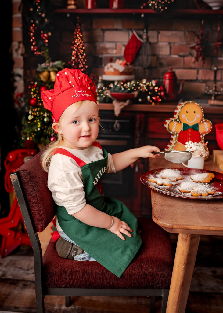 This year, I am thrilled to introduce something truly special – the Christmas Kitchen Mini Photoshoot in Glasgow. If you’ve been searching for a unique and creative way to capture your child’s Christmas memories, this is the perfect session. With the charm of a festive kitchen, the warmth of gingerbread, and the joy of childhood play, this children’s Christmas photoshoot in Glasgow is all about fun, imagination, and heart-warming holiday portraits.