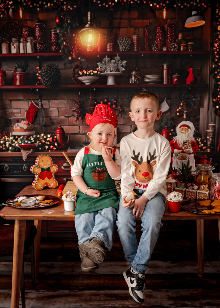This Christmas, step into a magical kitchen where the air smells of gingerbread, laughter fills the room, and children get to shine in their own festive adventure. The Christmas Kitchen photoshoot is the perfect opportunity to capture those magical holiday moments – whether it’s your baby’s first Christmas, your toddler’s giggles, or your older child enjoying the festive fun.