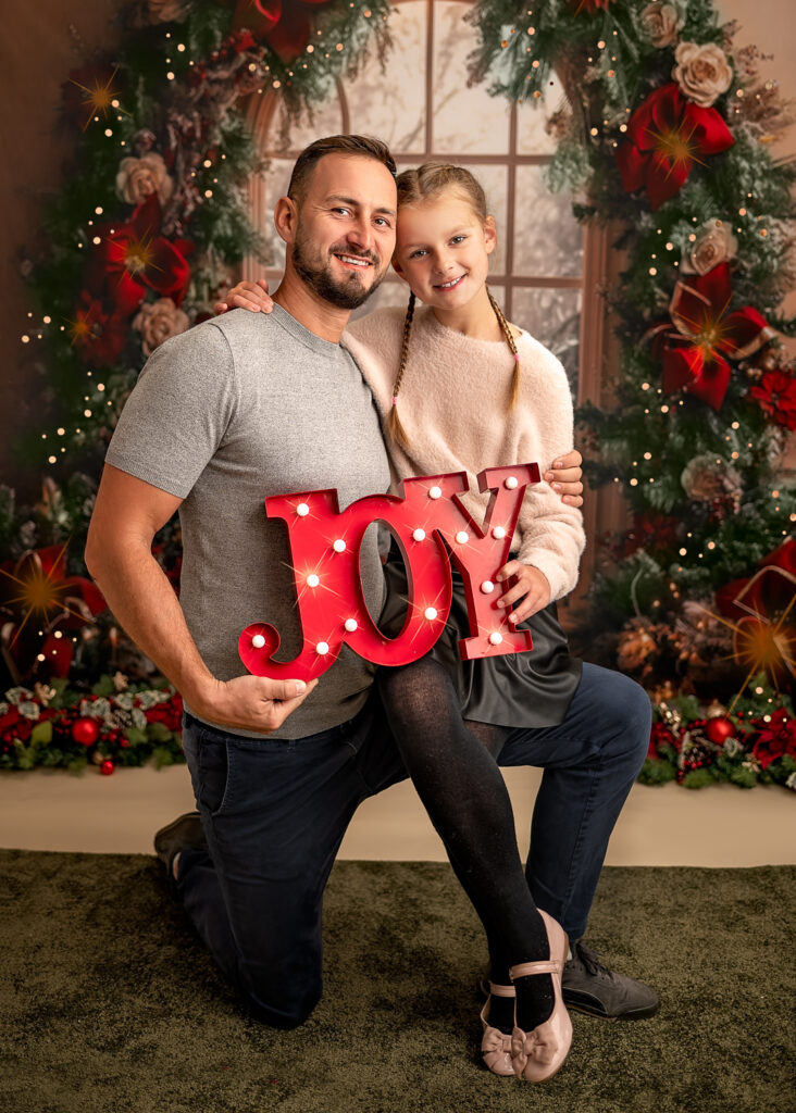 I want your festive family photoshoot in Glasgow to be as enjoyable as possible. When you arrive, you’ll find a warm, welcoming space with a cosy Christmas setup that looks straight out of a holiday storybook.